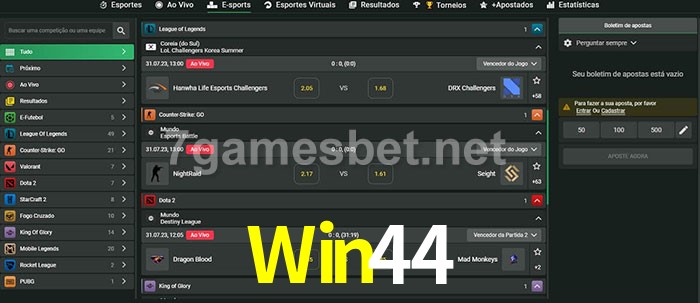 O Win44 oferece uma grande seleção de opções de apostas em e-sports com probabilidades competitivas
